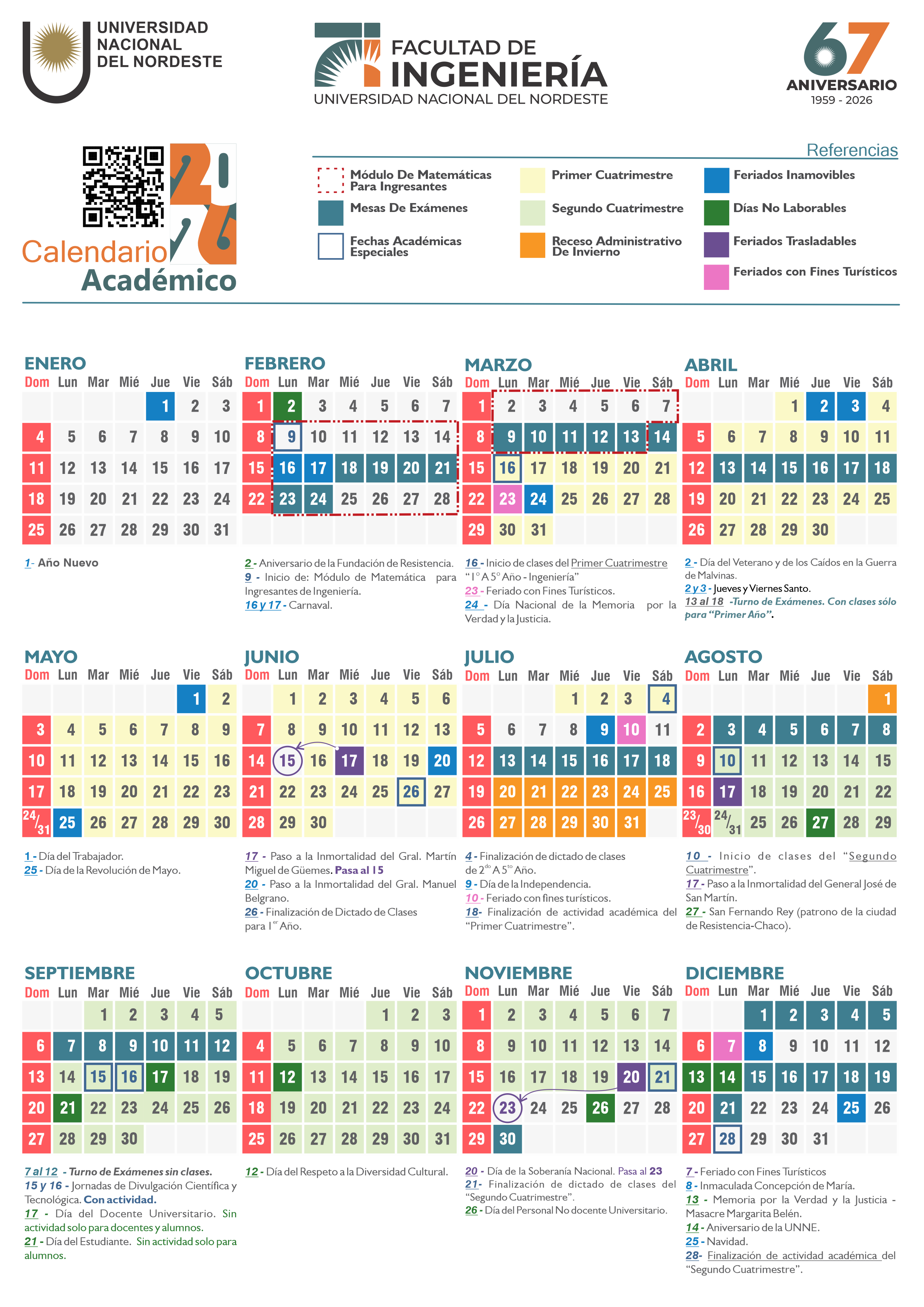 Calendario Académico Phone Contactar con la Secretaría Académica Nombre Apellidos Email Comentarios / Preguntas Descargar Resolución 2026 Novedades para Docentes INGRESO 2026 # La UNNE Que Queremos Requisitos de Ingreso Carreras de Grado INGRESO 2026 – Mayores de 25 años Curso de Preparación para Aspirantes (CPA) Capacitaciones para Docentes Calendario Académico Información para Docentes Información para Estudiantes Noticias Relacionadas 67 años construyendo futuro desde la ingeniería pública Seguridad vial: estudiantes de Ingeniería proponen una rotonda moderna para el acceso a Itatí Innovación Fotovoltaica: Prototipo para refrigeración en zonas rurales aisladas Acto de Colación 2025: Ingeniería UNNE celebró a sus nuevos graduados y una posgraduada Cargar más